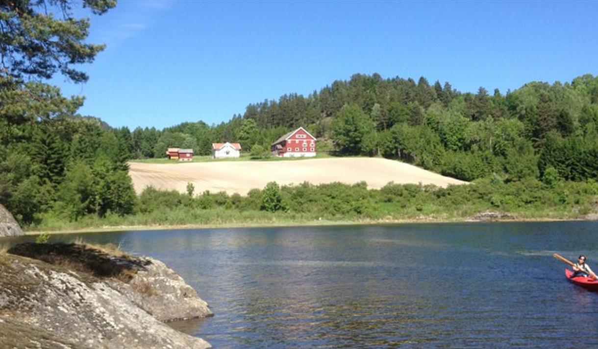 Start turen med å krysse kanalen, og padle langs fjellet forbi den historiske kanalbrygga Gvannes brygge, som tidligere ble brukt som utslagsplass for tømmer.