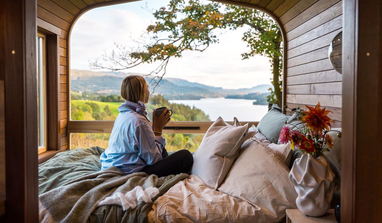 Vi ønsker å tilby mer enn bare overnatting. Du kan hygge deg med en kopp kaffe og en av Lises populære «bøllar» (bakst) og våkne opp til den fineste utsikten.