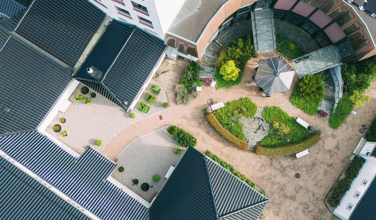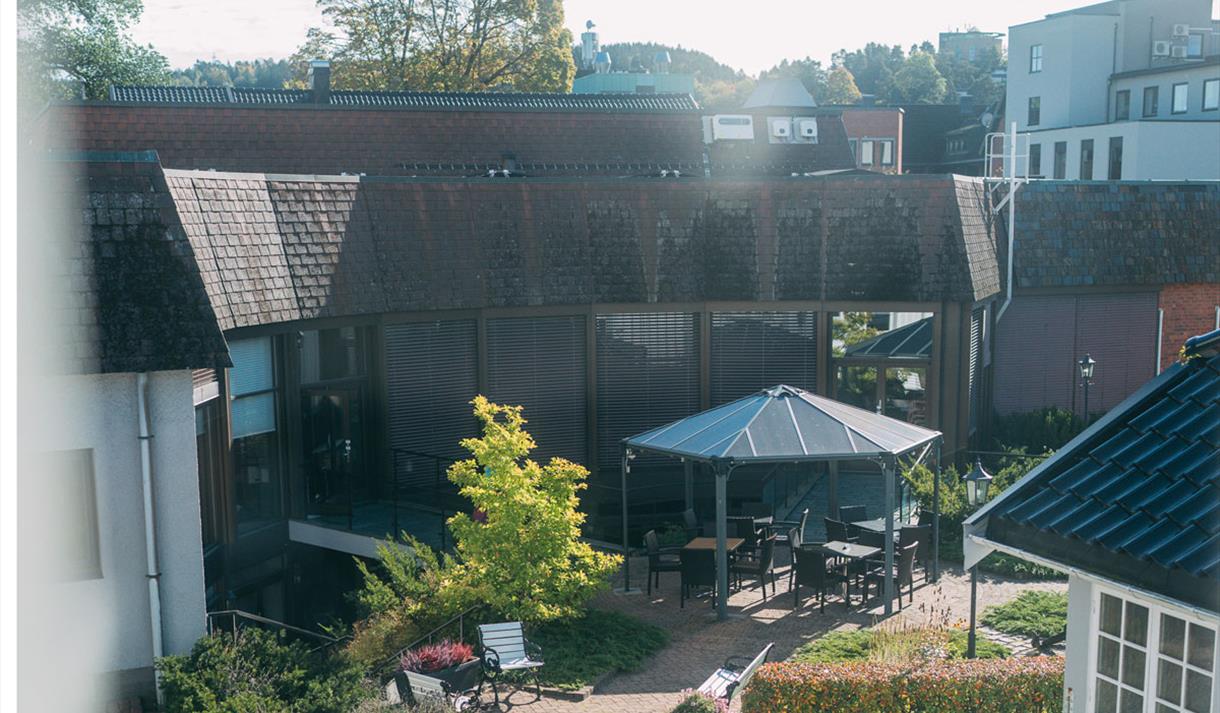 Midt inne i hotellet har vi dessuten en frodig hage med benker og bord som du kan benytte. Det to siste årene har vi arrangert konserter der med lokale artister.