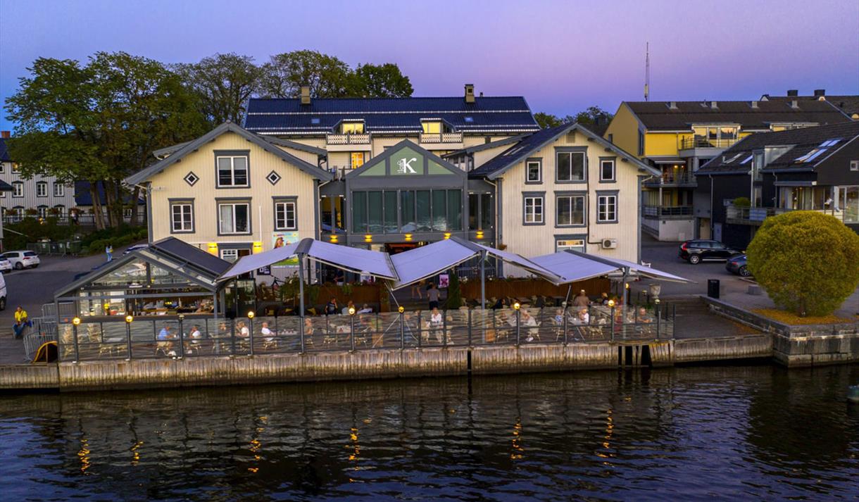 Kafe K er en perle av en restaurant som ligger flott til ved Porsgrunnselva! Vi har en nydelig uteplass hvor det er godt å sitte å kose seg med mat og drikke langt utover kvelden, da det er tak som kan kjøres ut samt varmelamper – som gjør det lunt og fint!