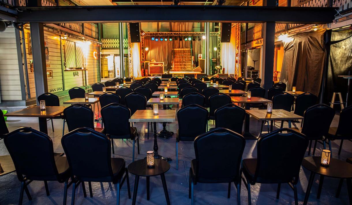 Vi har også en flott scene hvor det skjer mye gjennom hele året, konserter, bokbad, foredrag, teater, kurs/seminar med mer. Vi har over 150 arrangementer per år!