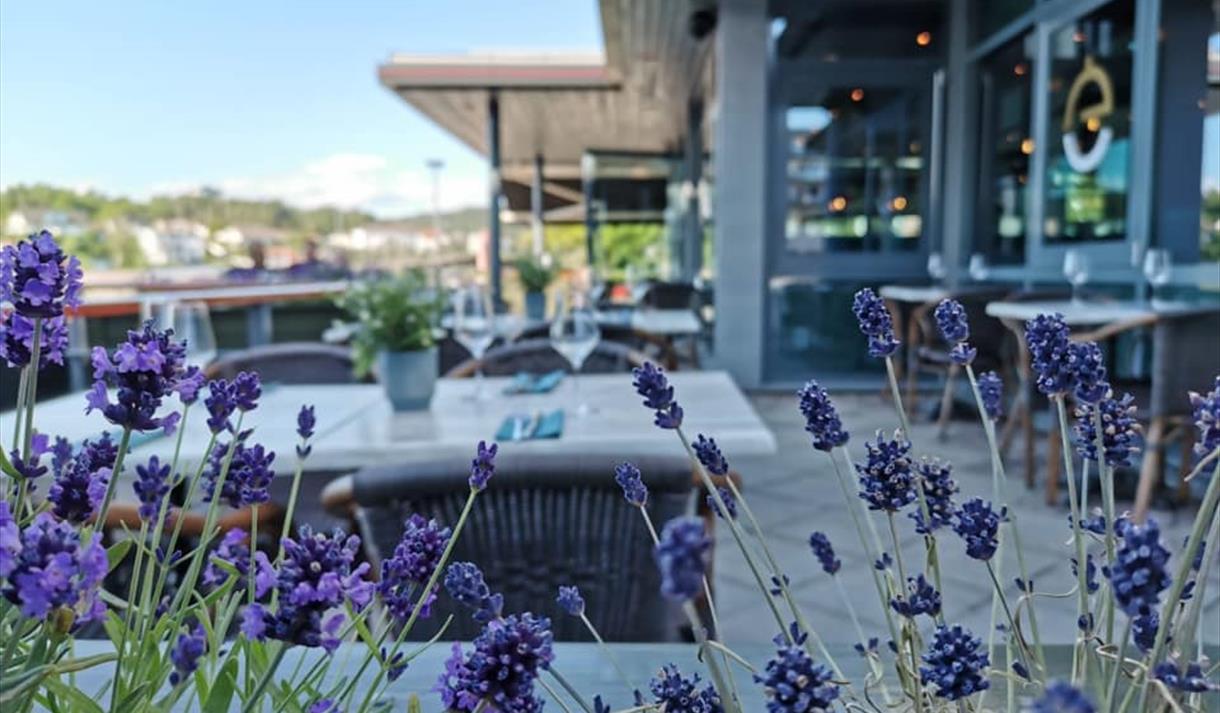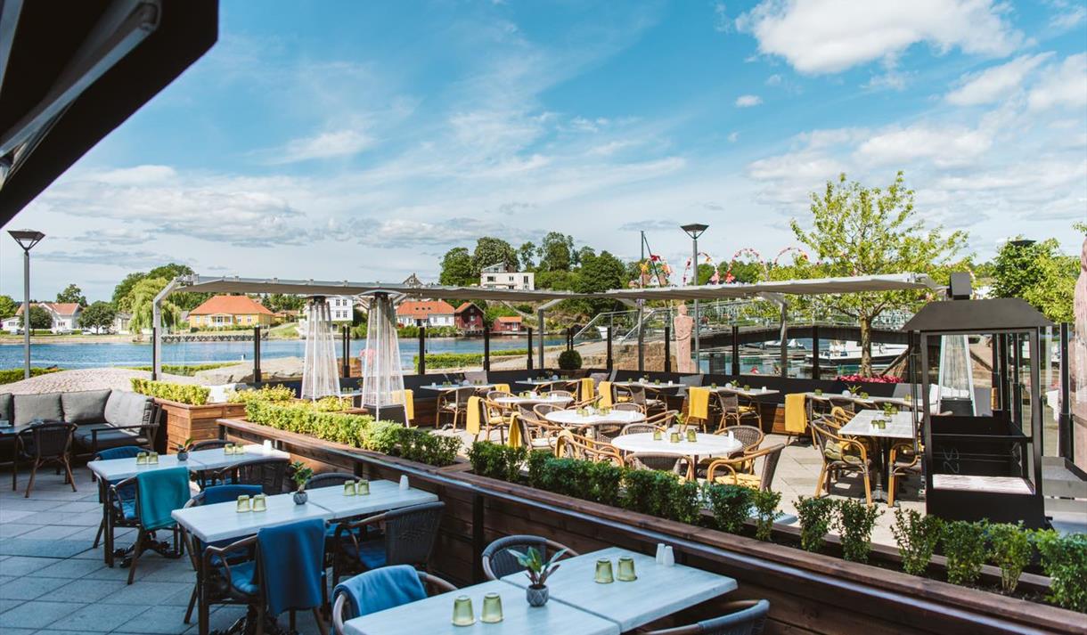 Restauranten holder til i moderne, delikate lokaler på Bratsberg brygge i Porsgrunn og har også flott uteservering når været tillater det.