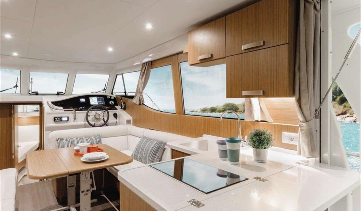 Våre luksuriøse Greenline-yachter lar deg utforske det vakre Telemark i ro og stillhet – helt uten diesellukt eller motordur.