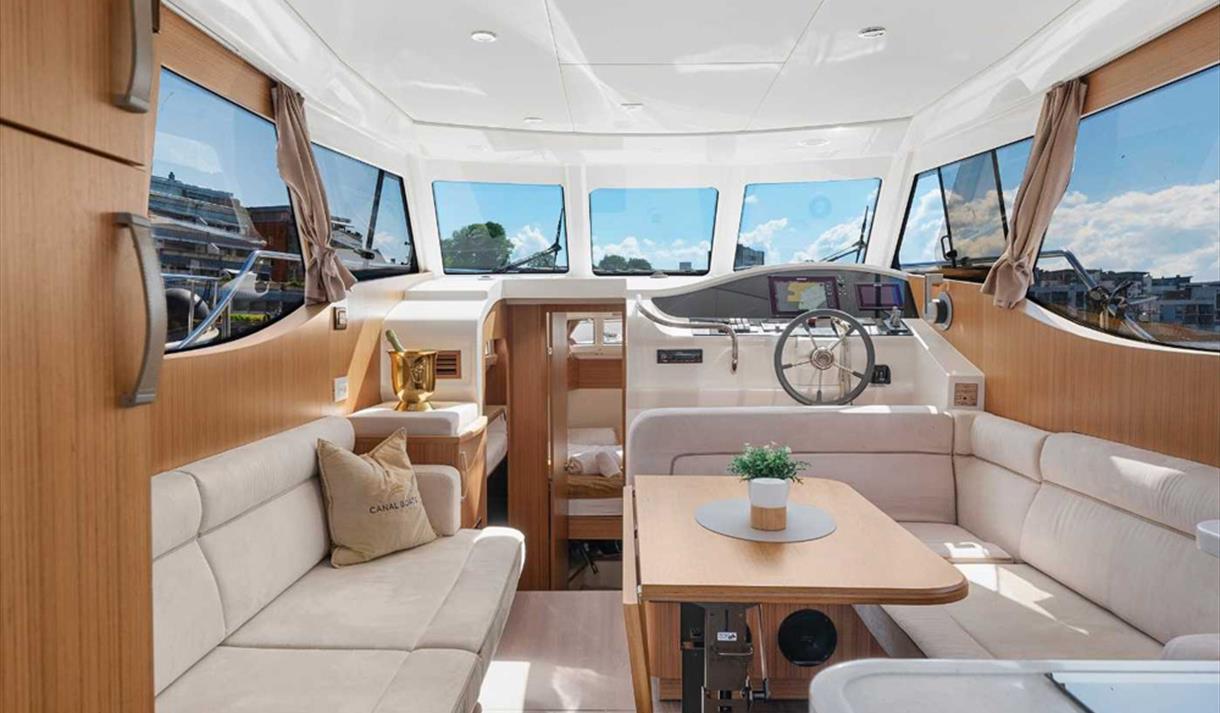Besøk canalboats.no for å velge yacht og sjekke tilgjengelighet.