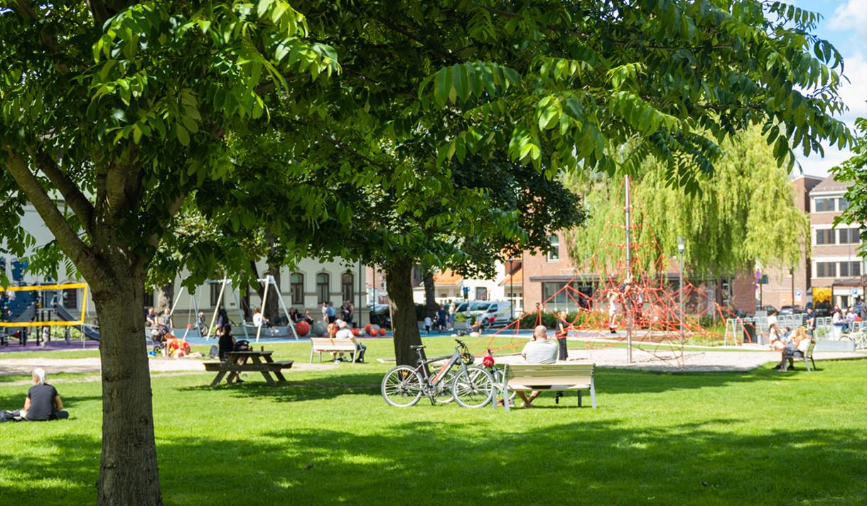Rådhusparken er designet for både lek og avslapning: