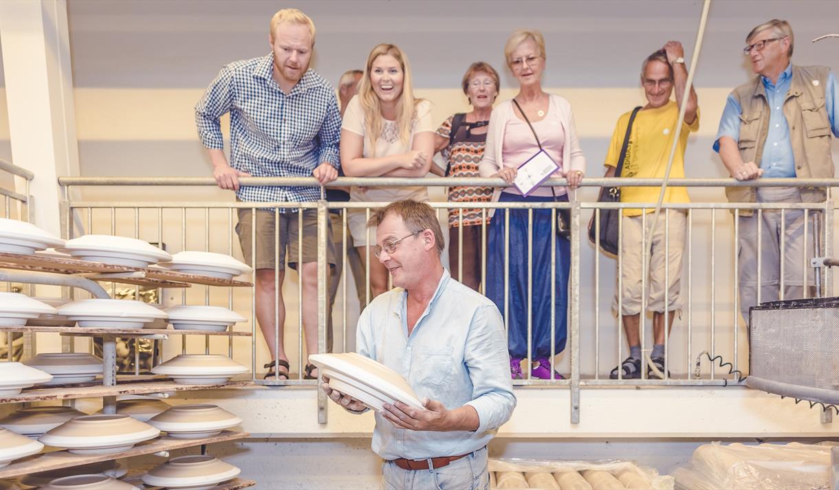 Publikum kan besøke produksjonen og få se hvordan det hele foregår fra blanding av råvarer, utforming av produktene til brenning og dekor. Fra publikumsgalleriet har man god oversikt og kan på hverdager se arbeiderne i sving. Omvisingien på produksjonen må forhåndsbestilles. Ta kontakt med Telemark Museum på tel. 35 54 45 00.