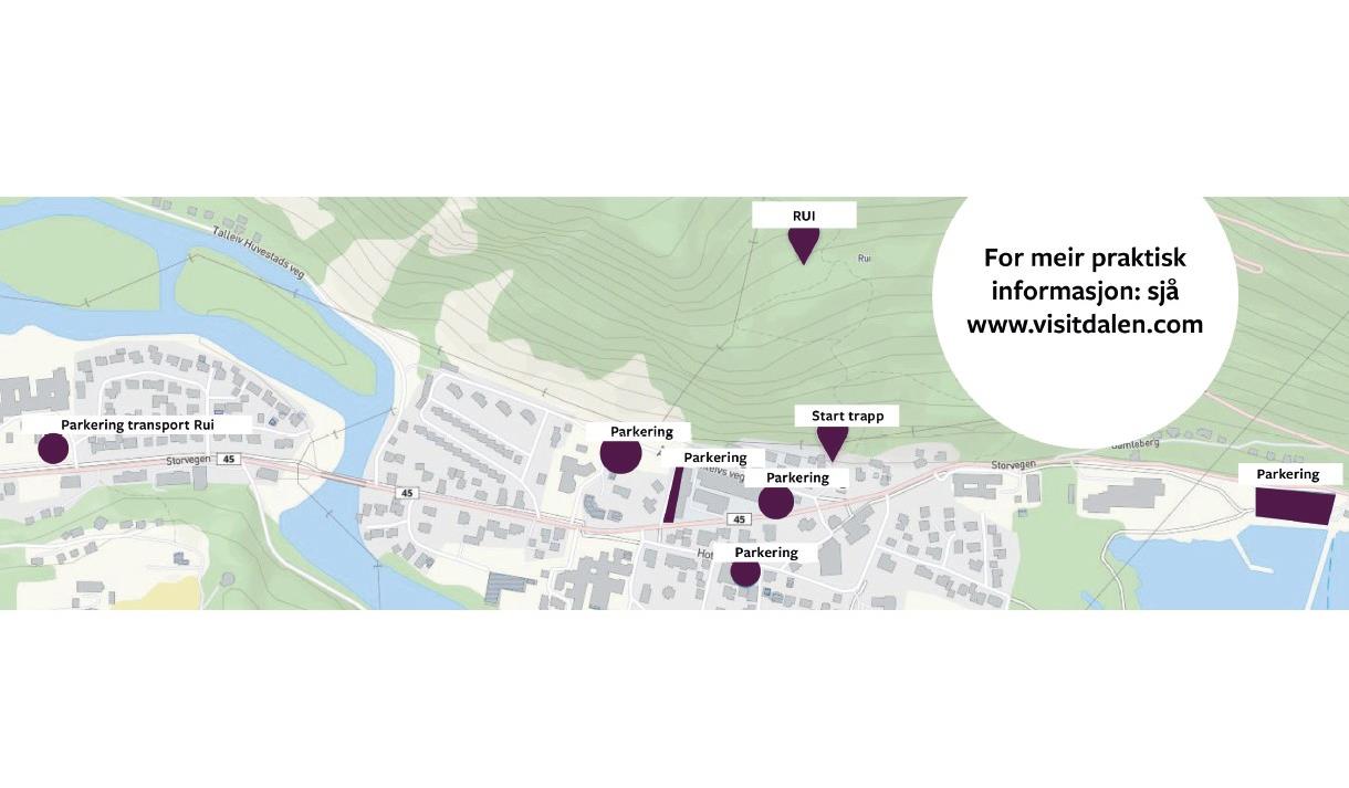 Om du vil ha med deg opninga av trappa før du blir transportert opp, så er det sjølvsagt mogleg, taxien vil ha stoppeplass der også, så når opninga er ferdig får de skyss opp.Siste haldeplass for transport er parkeringa på bryggja på Dalen. Transporten er gratis.