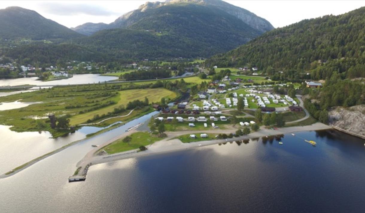 Enten du vil ta ein forfriskande morgondukkert eller bruke heile dagen ved vatnet, er dette staden for avslapping og naturglede. Stranda er lett tilgjengeleg frå campingområdet og ligg i eit lunt og roleg område med utsikt mot skogkledde åsar og fjell.