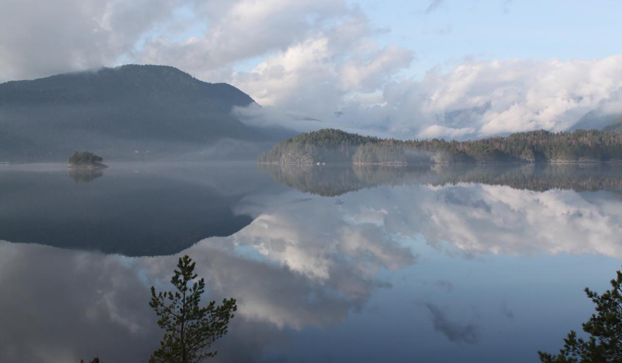 Frå utsiktsposten på Nylende, som nå er tilrettelagt som stoppestad langs vegen, ser du…