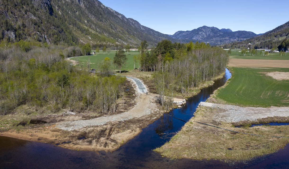 Vegomtale: Frå Nutheim kan du sykle ned bakkane til Flatdal. Nede på flata etter butikken, kan du ta inn på sykkelvegen langs åmuren på høgre side, fylg skilting med dei grøne sykkelpilene. Du kjem framom idrettsanlegget og badedammen. Vidare utover den flate dalen fylgjer sykkelruta delvis åmuren langs Flatdøla, driftsvegar ute på teigane og fylkesvegen. Ute på Flatdalsøyan, på Nirisøy, kjem du til eit gamalt høysel, som er gjort om til dagsturhytte som er open for alle som er på tur. Her kan du eta nista di, inne i selet i ly for ver og vind eller ute ved bålplassen. Der du kan fyre opp eit bål og kanskje legge litt på grillen. Vatn kan du hente i elva om du går ned den mura steintrappa. Er det sommar, er det fint å bade både her og også fleire stader langs ruta. Vegen går vidare ut til Flatsjå før han svingar tilbake og ut att til fylkesvegen. Du kan velje å sykle denne tilbake, eller ta turen tilbake samme veg som du kom. Sett bort i frå bakkane opp til Nutheim er denne ruta utan stigning