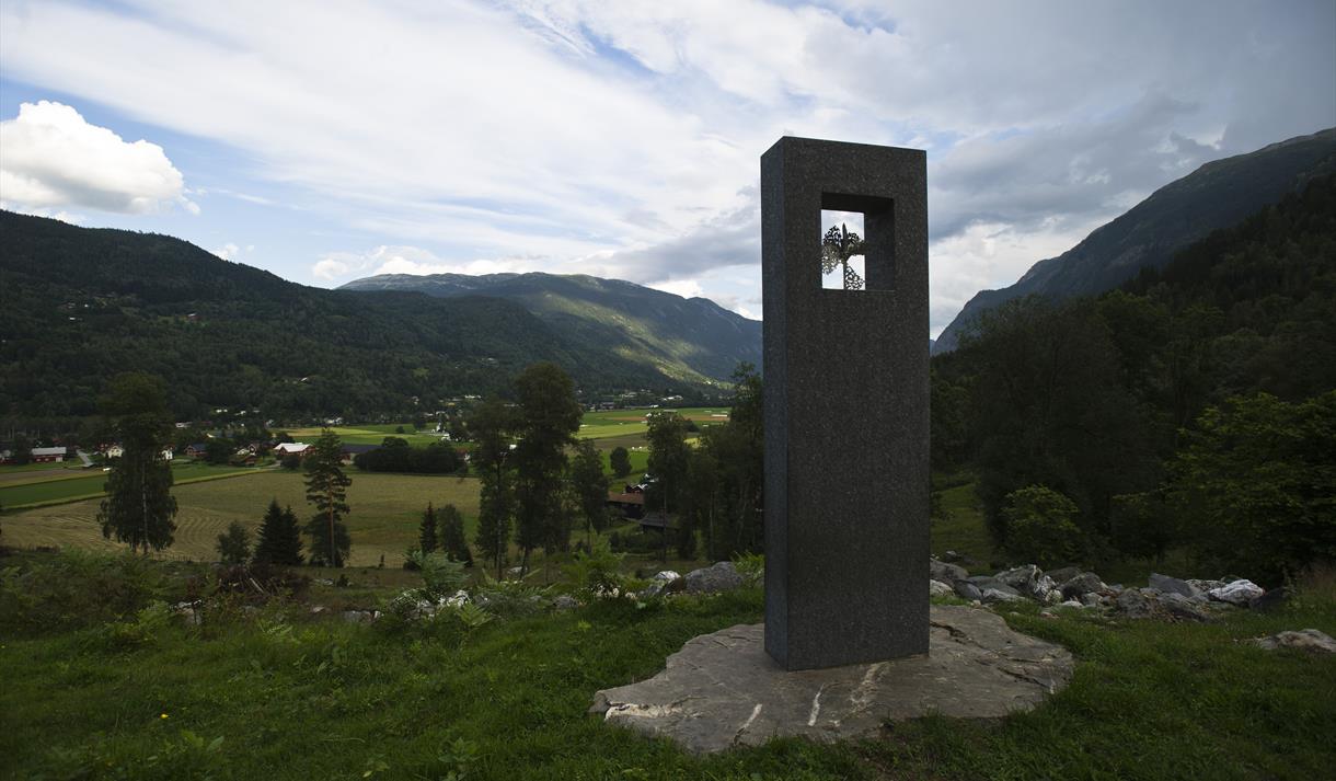 Åtte skulpturelle "kikkeskåp" i stein står ute i landskapet på stader rundt Seljord som…