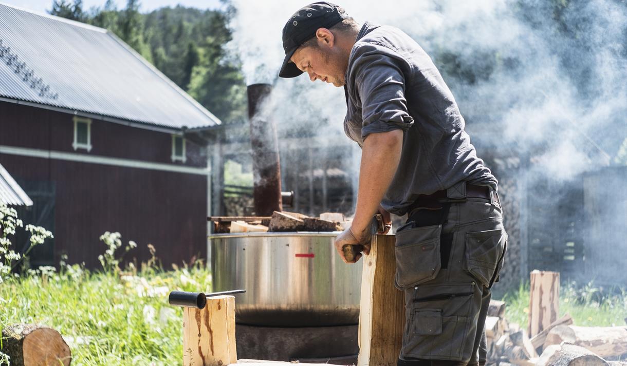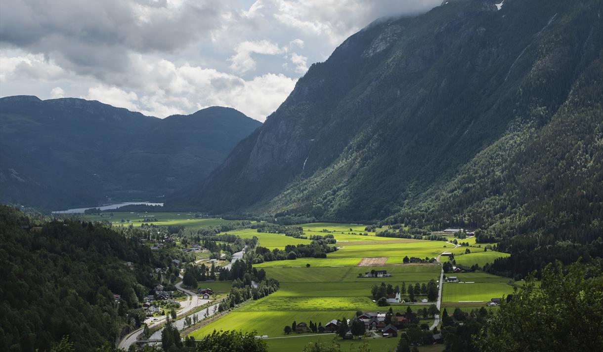 Ta deg tid, enten på sykkel, til fots eller med bil, gjennom Hjartdal, Svartdal og Flatdal. La landskapet lede deg og nyt den mektige naturen. Følg elva Hjartdøla inn den trange og mystiske Ambjørndalen, se ur og nutar som reiser seg frå dalbotnen og elva som renn ut i stille, mørkt vatn i Flatsjå. Hjartdal Nordbygd og Svartdal er ein del av dei mest verdifulle kulturlandskapa i Noreg. Her finn du enger av villblomar, lauvingslier og eit artsmangfald utanom det vanlege. I nutar, skoger, hauger og dalar finns det gygrer og troll, tusser og huldrar. Det seier i alle fall folk her. Segn og forteljingar knytt til landskap og stadsnamn er ein viktig del av opplevinga her i bygdene. Trollbindande natur og det vakre blå lyset har leia ein straum av kunstnarar til Telemark og Flatdal. Nutheim blei sjølve samlingsstaden, kunstnarhotellet som ga inspirasjon og arbeidsro. Ta deg tid til ein lunsjpause her, vertskapet delar gjerne familiehistorien om Nutheim og segn frå bygda. Andre fine stoppestader langs ruta er Bygdemylla i Hjartdal, der du kan ta deg eit bad i fossen, lauvingslia på Myljom-To med dei vakre styvingstrea, og spinneriet i Svartdal der du kan kjøpe med deg lokalprodusera garn.