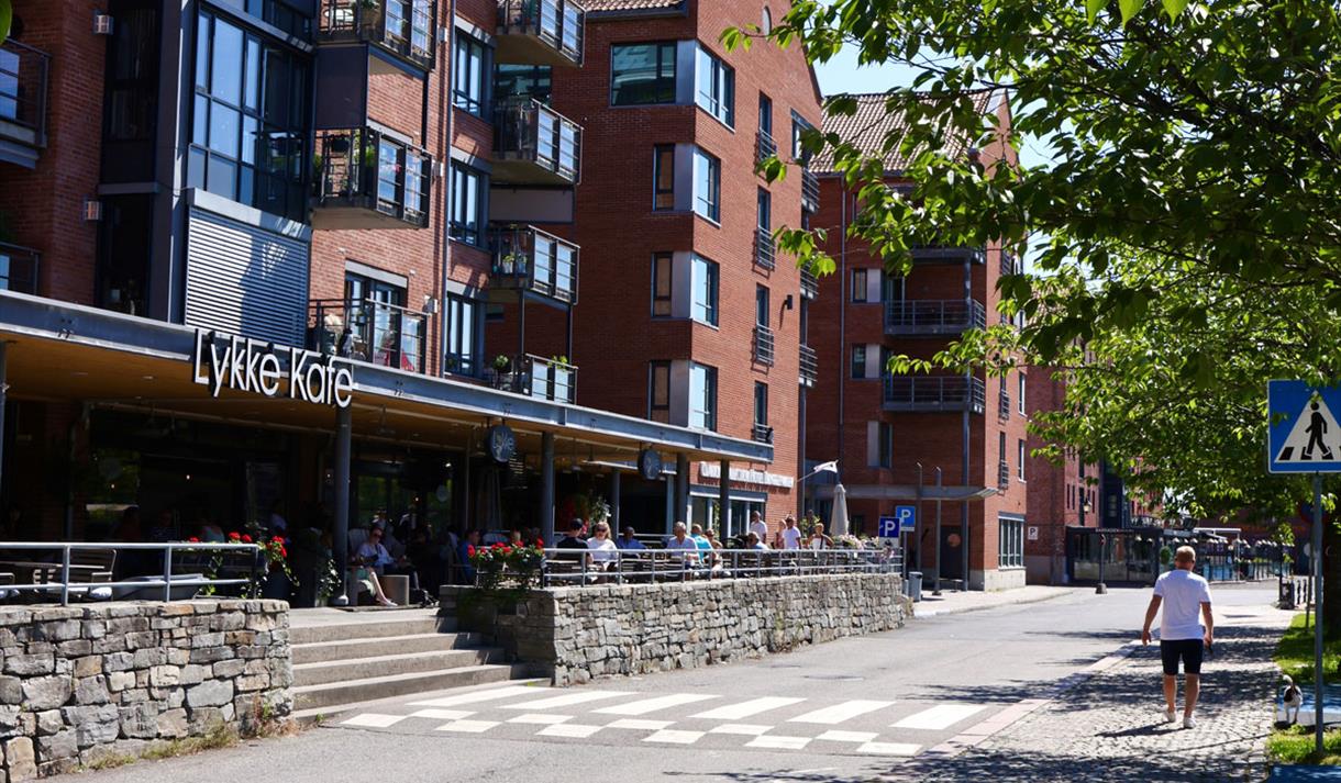 Lykke kafé er et populært serveringssted i solveggen på brygga i Skien. Her kan man senke skuldrene og nyte livet i et stemningsfylt, pulserende og samtidig avslappende miljø. Lykke har en sesong variert meny for både mat og drikke, samt dyktige baristaer som kjenner sitt fag. Her serveres det hjemmelaget lunch, middag og kvelds, samt et bredt spekter i kaker for enhver smak. Lykke har også alkoholservering.