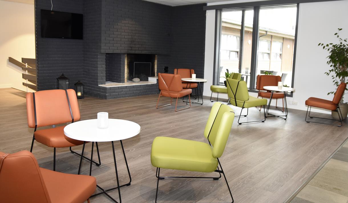 Alle fellesarealer er godt merket med gode kontraster for svaksynte. Hotell fritidsparken har også en stor flott spisesal, tv-stue, bar og moderne møtelokaler, samt heis med tale og blindeskrift. Mer informasjon om tilretteleggelser finner du her.