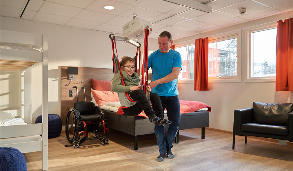 På ett av rommene finnes det også hev/senk på toalett og vask. Spør betjeningen om hjelp til å finne det beste rommet for deg og din familie!