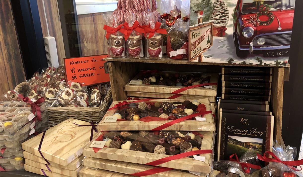Hos Saga Chokoladefabrikk på Sagasenteret i Skien finner du en ekte sjokoladefabrikk.