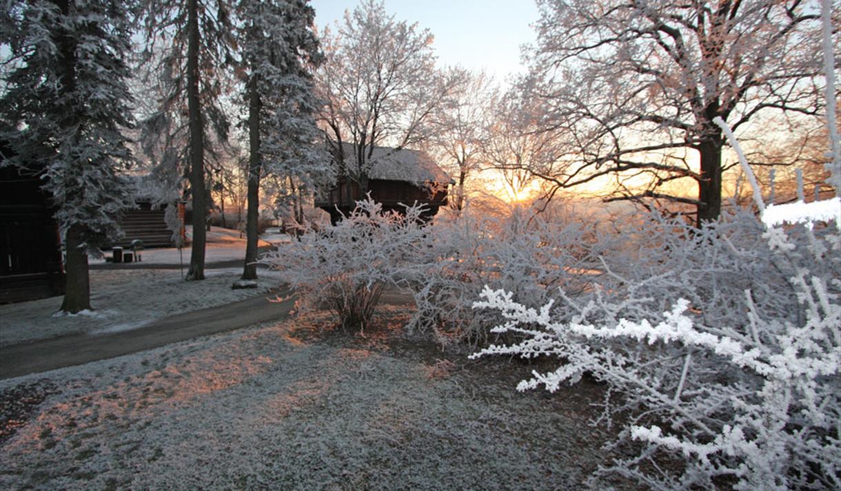 Den gamle hagepaviljongen fra gården Kjellestad ved Brevik ble satt opp på «Lysthushaugen» i parken i 1927. Paviljongen var en gave til museet fra Norges Bank. I det sydvestlige hjørnet av parken ble det i etapper bygget et friluftsteater som stod ferdig i 1924. På friluftsteateret – som i de første tiårene ble omtalt som «sommerteateret» – ble det arrangert mange store teater- og revyforestillinger og konserter i mellomkrigstiden. Teaterscenen ble også tegnet av arkitekt Heinrich Karsten.