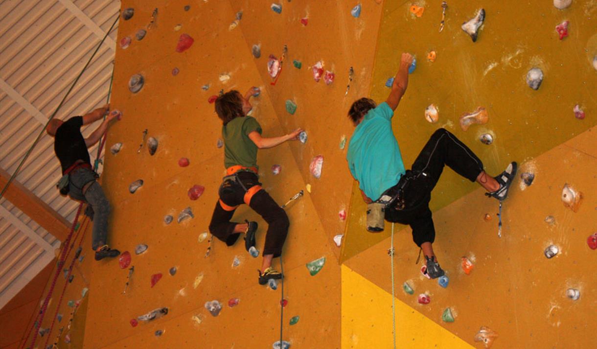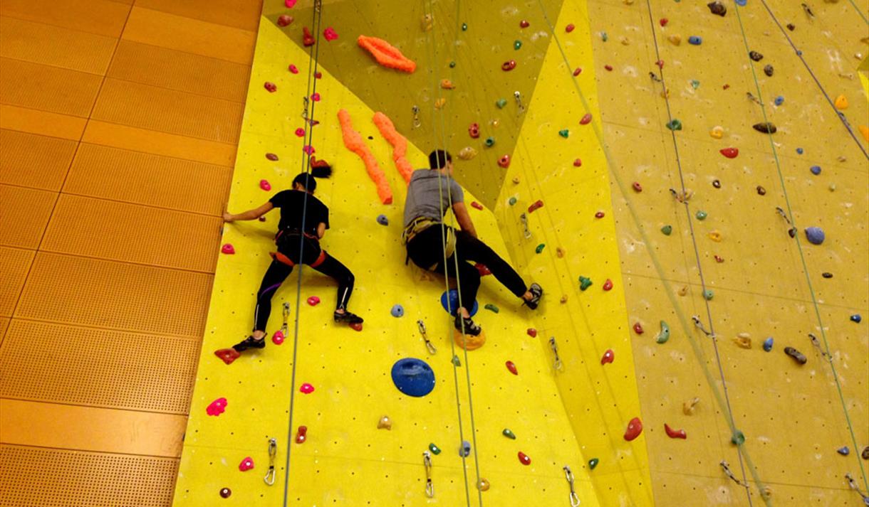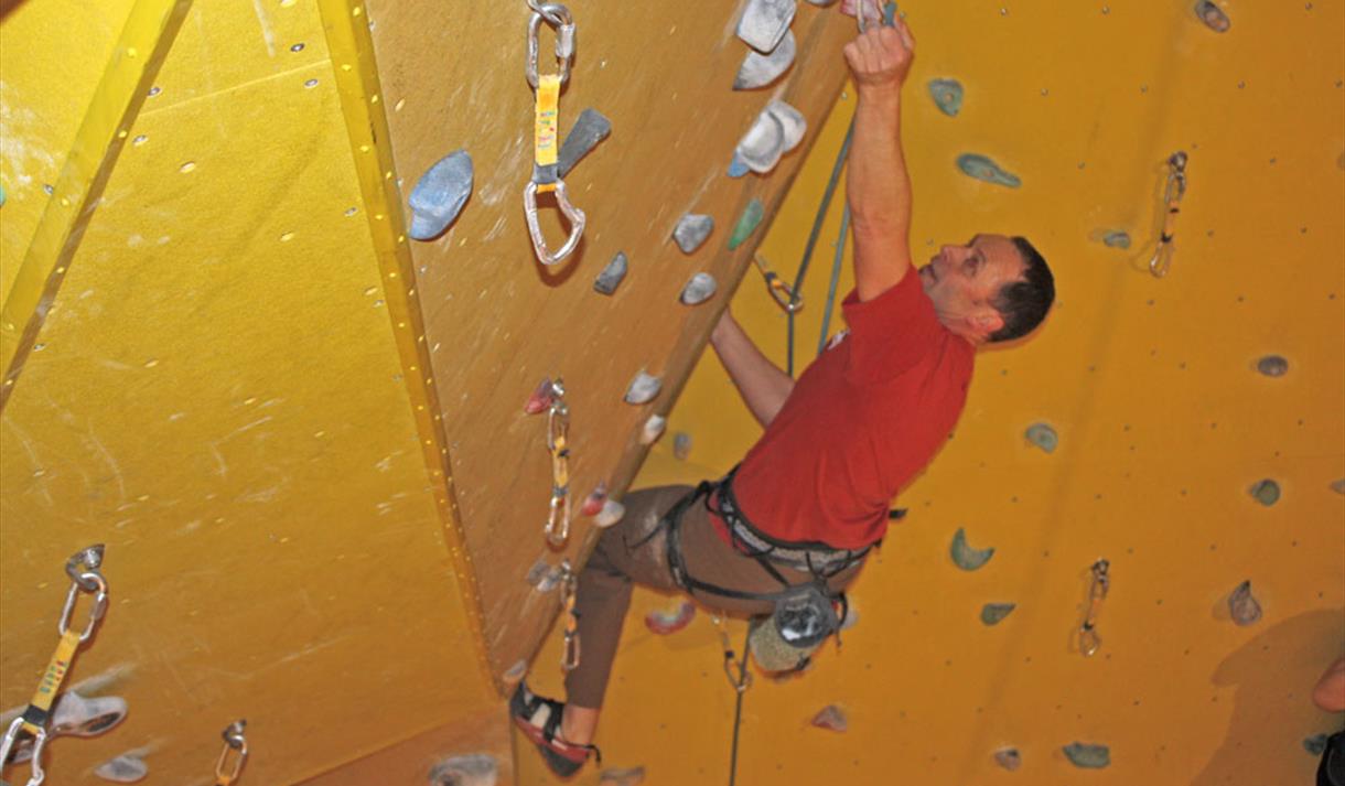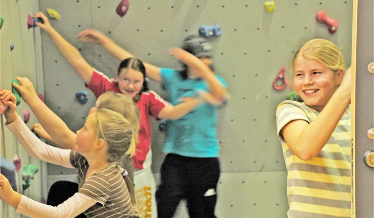 Klatreveggen ligger innerst i Flerbrukshallen og er 14,7 meter høy og 18 meter bred. Når du klatrer på klatreveggen må du alltid ha med en som har klatrebevis, enten Brattkort eller Topptaukort.