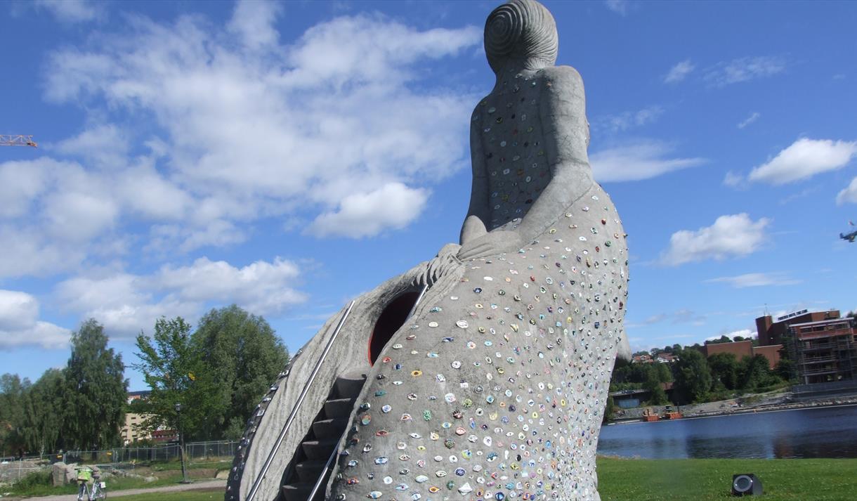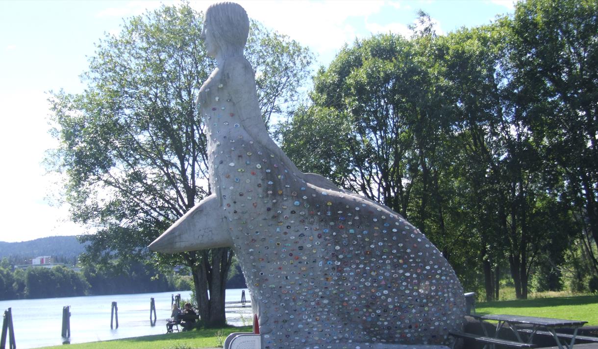 På Bakkestranda, rett utenfor sentrum i Skien, finner du skulpturen Rottejomfruen.