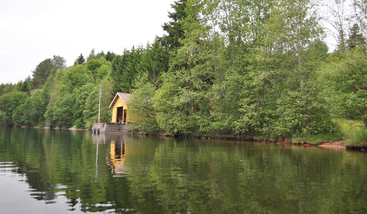 Baderunden krysser kanalen 2 ganger og går innom vassdraget i Landsmarka. Vi har valgt ut noen punkter for deg i denne miniguiden: