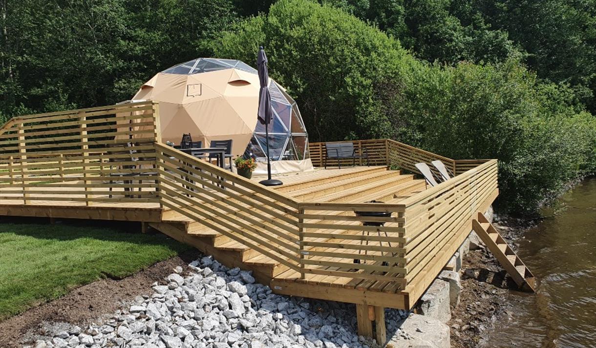 På First Camp Norsjø finner du 2 Artic Dome glampingtelt med nydelig utsikt rett ut mot Norsjø. Glampingteltene har en egen platting på hele 130 m2 med stige rett ut til vannet. Her er det sengeplass til 4 (dobbeltseng og sovesofa), inkl. sengetøy, håndklær og utvask.