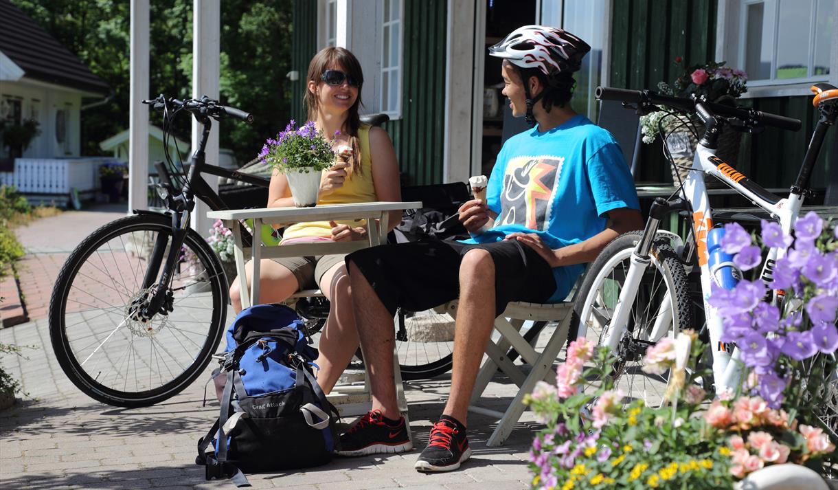 Begynn turen ved First Camp Lunde. Her kan du se kanalbåtene møtes daglig. Ta gjerne en "ispause" på Gartneriet før du tråkker videre.