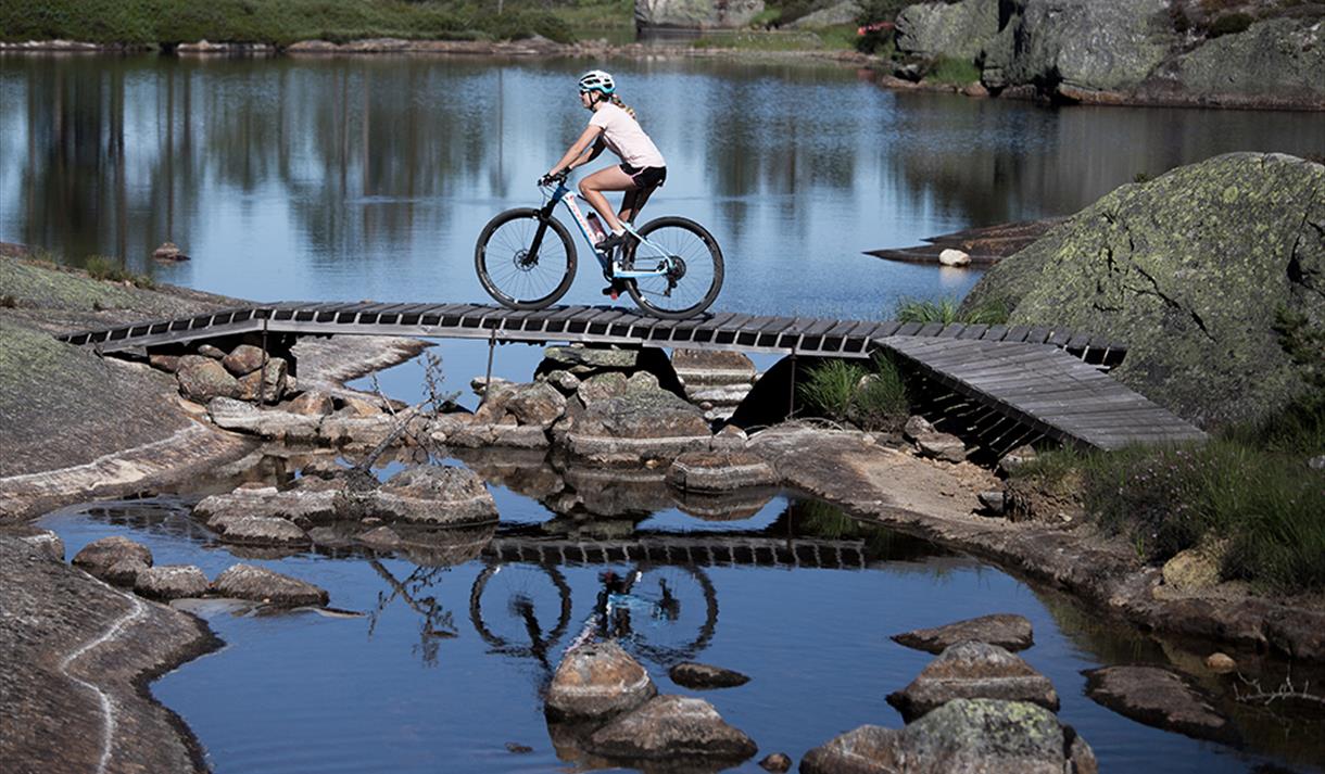Området er rikt på utallige flytstier og innbydende skogsterreng som venter på å bli utforsket. Her får du en helt unik og minneverdig sykkelopplevelse i et variert og spektakulært fjellmiljø.