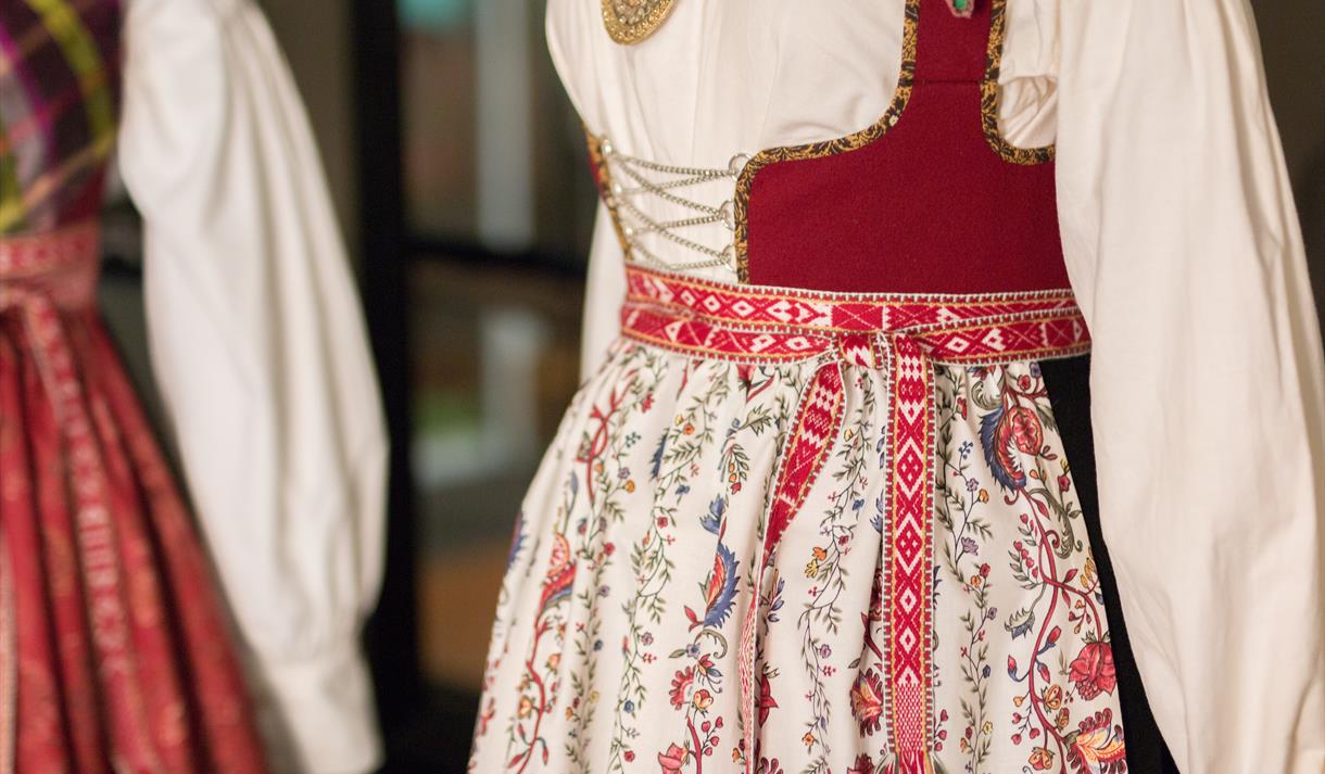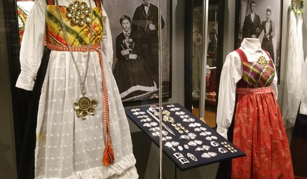 Du kan også se den flotte utstilling heter «Mangfald og Mote» og handler om folkedrakter i Åmli fra 1700-1800-tallet, utgangspunktet for dagens Åmlibunad.