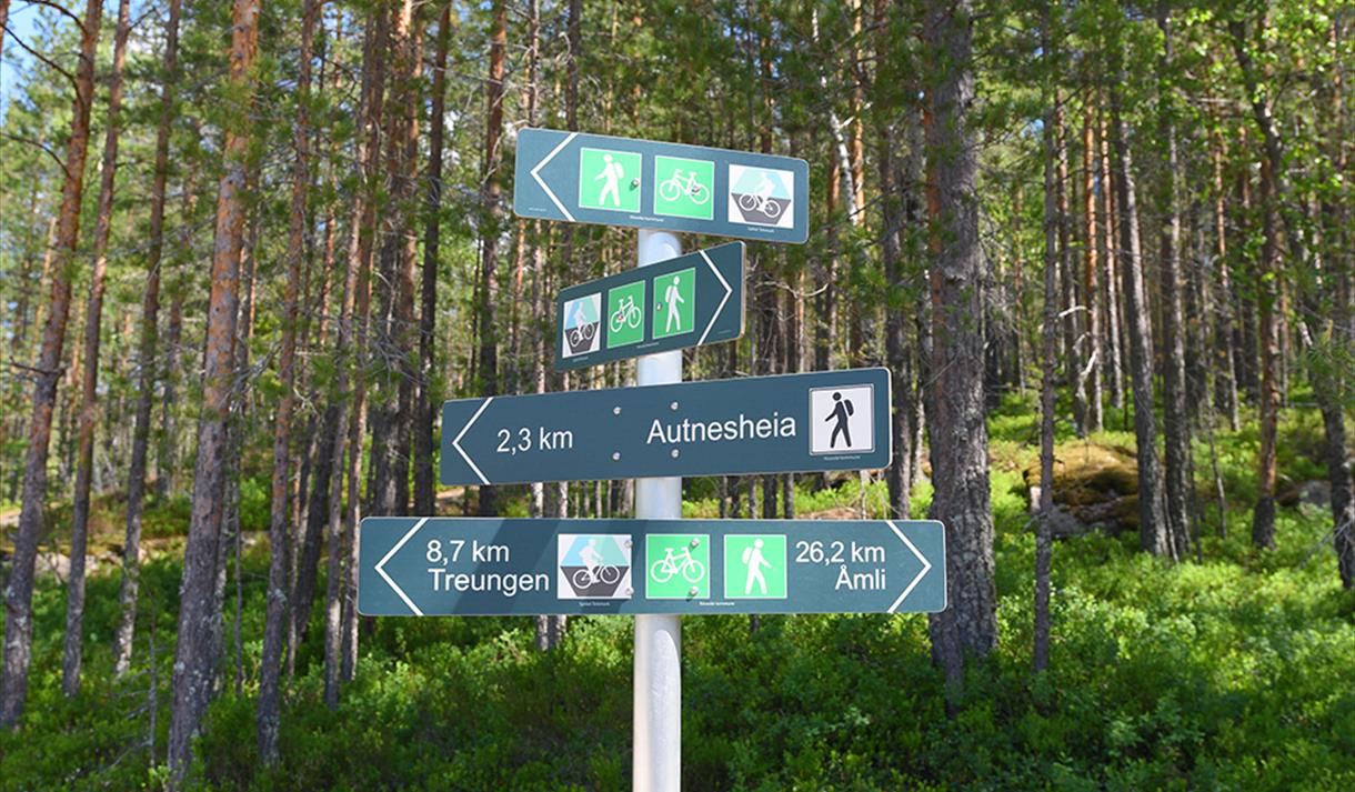 Du finn kafé, butikkar og overnattingsplassar både i Åmli og Treungen. Sykkelturen eignar seg godt for syklistar i alle aldrar.