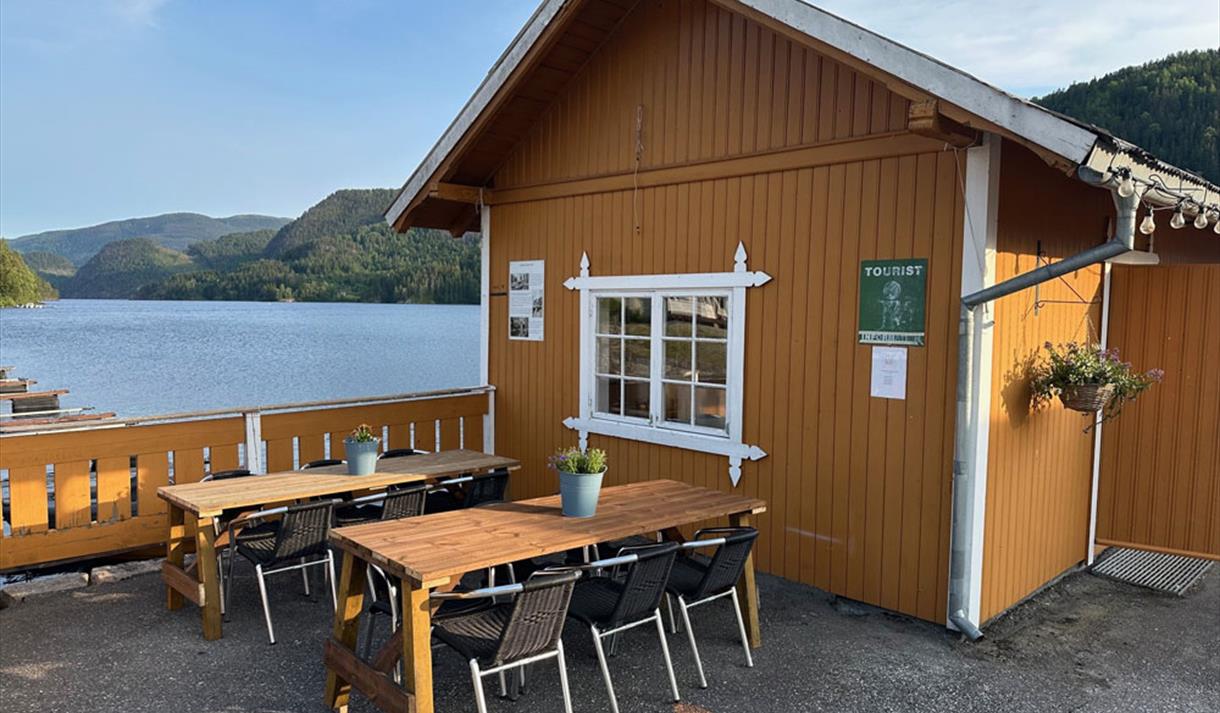 En vakker plass i Telemark, uteservering ved Brygga og Turistinformasjon!