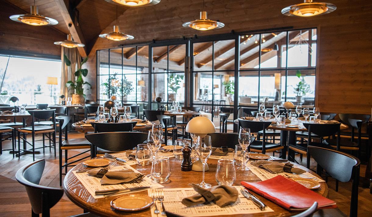 Blikk Fjellbrasserie utgjør hjertet av hotellets spiseopplevelser, og her venter en fortryllende a la carte-meny skapt av stjernekokk Jimmy Øien.