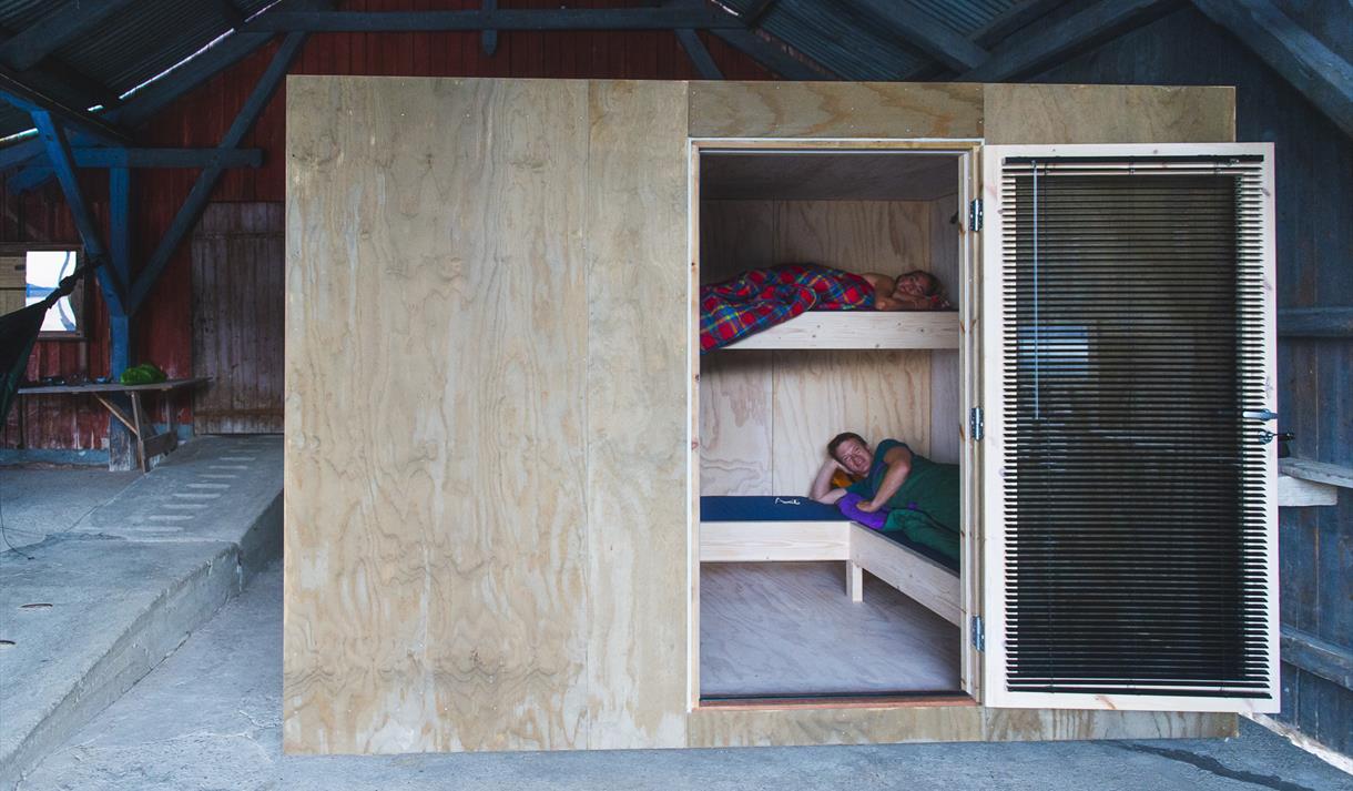 Overnatting i soveboksen kostar kr. 150,- per person per natt. Når du bookar soveboksen, er det din private booking i tidsrommet du har booka.