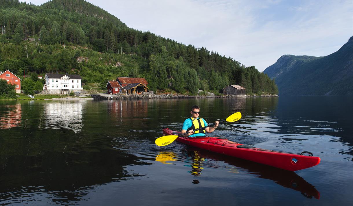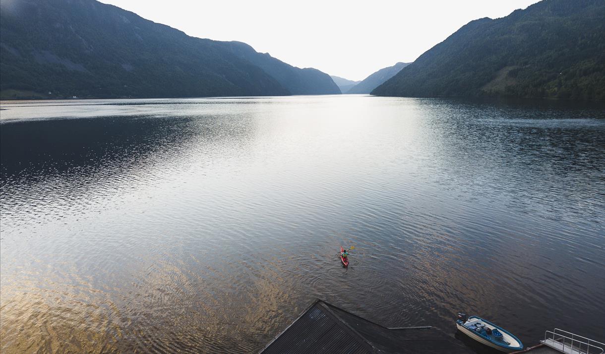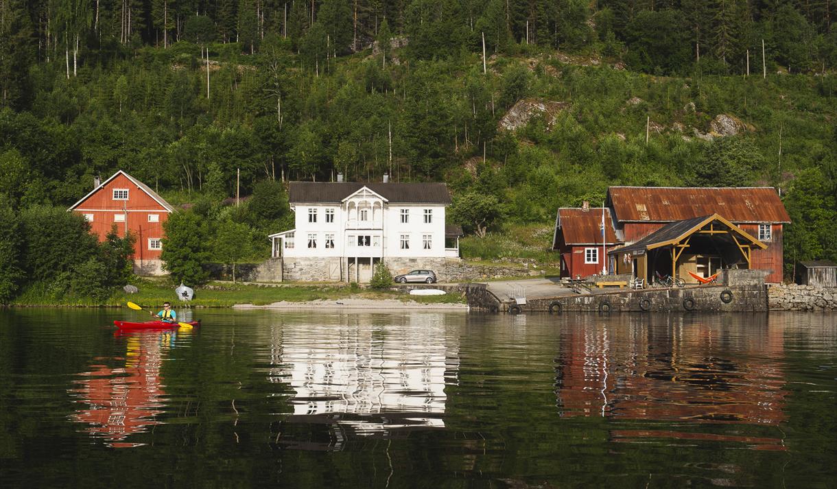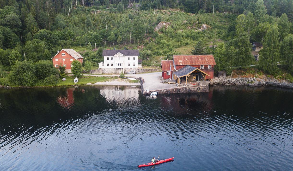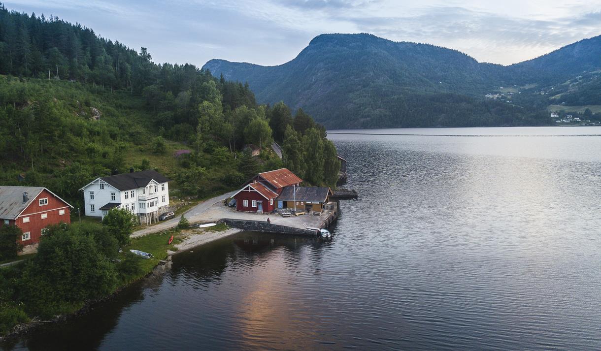 Frå bryggja er det 15 km opp til Åmdals Verk Gruver. Her kan du oppleve flotte utstillingar og bli med på gruvevandring.