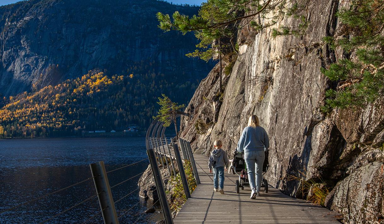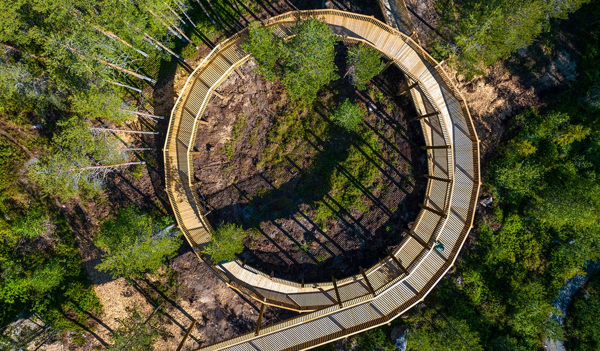Tretoppveien er designet av Danmarks ledende arkitektfirma, EFFEKT og skal gi alle menesker muligheten til å komme seg på topptur i Fyresdal uansett funksjonsevne.