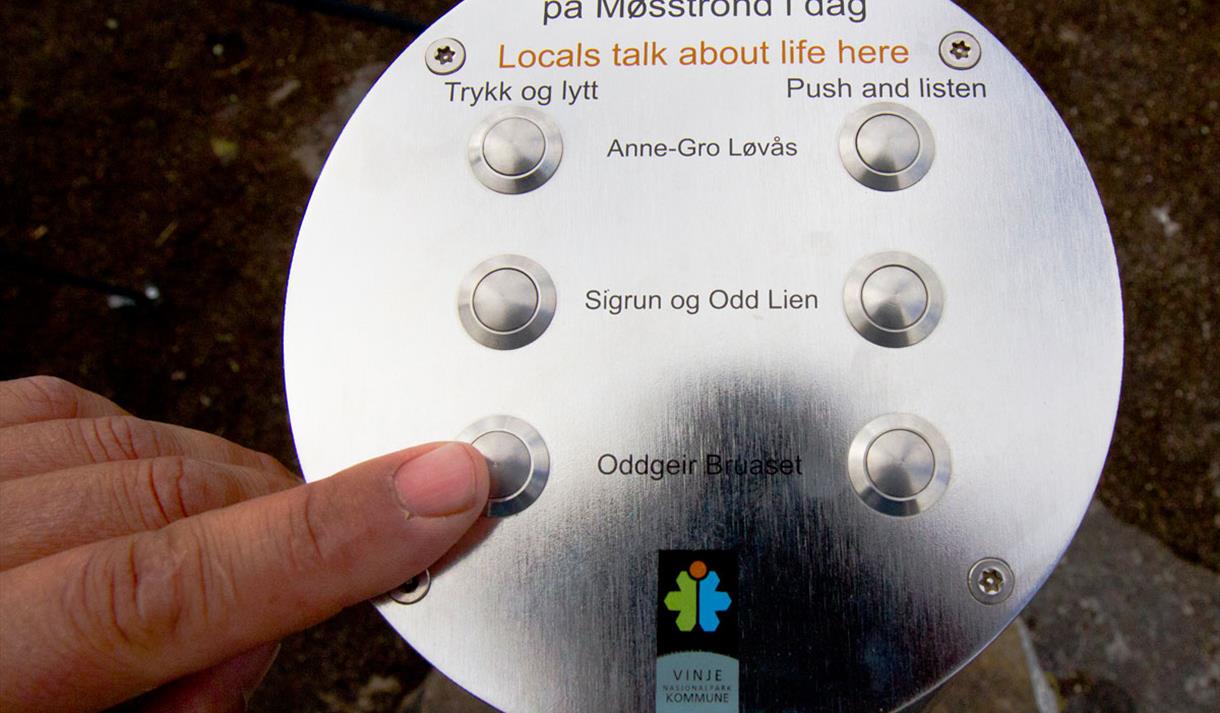 Åtte skulpturelle "kikkeskåp" i stein står ute i landskapet på stader som er knytt til…