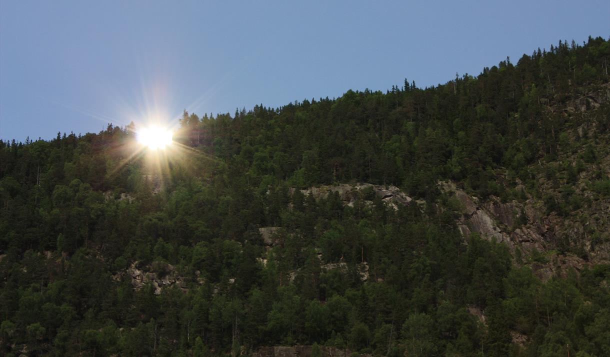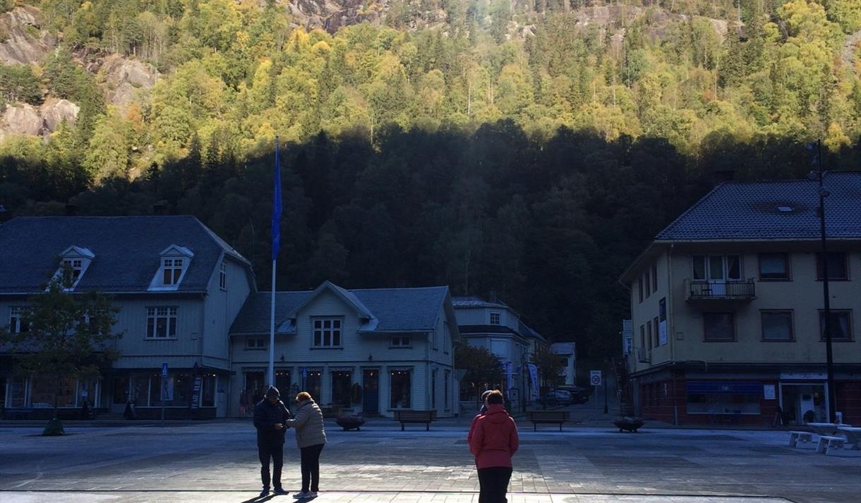Byen Rjukan ligger i en øst/vest – vendt dal. Den mektige Gaustatoppen (1883 m) og de stupbratte fjellsidene sør for byen gjør Rjukan solløs i vinterhalvåret, fra oktober til mars. Hvert år feires solas tilbakekomst med stor solfest på Rjukan Torg.