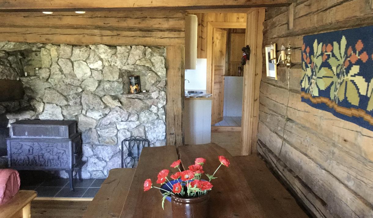 Eldhuset er eitt av husa på gardstunet, ein gammal tømmerbygning som no er peisestoge med natursteinspeis, vedovn, sofagruppe, langbord og TV m/parabol. Kjøkkenet har komfyr, kjøleskap, oppvaskmaskin, mikrobølgeovn og spisekrok. Badet har WC, dusj og vaskemaskin.